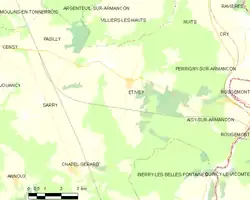 - Situación de Étivey en un mapa de Francia y de comunas limítrofes Archivado el 2 de enero de 2009 en Wayback Machine. (en francés)