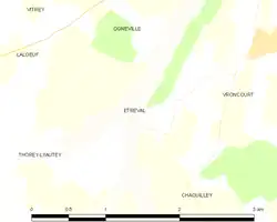 Étreval es una población y comuna francesa, en la región de Lorena, departamento de Meurthe y Mosela, en el distrito de Nancy y cantón de Vézelise.