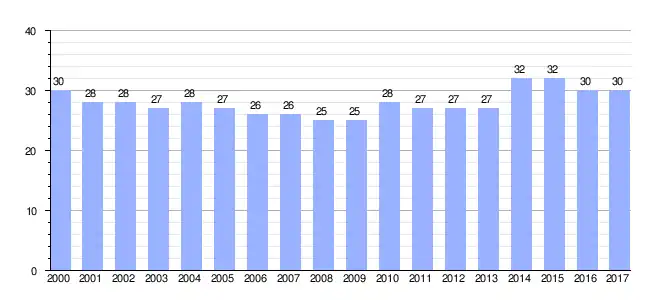 | Gráfica de evolución demográfica de Íñigo[6] entre 2000 y 2017 |