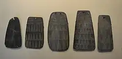Los «ídolos-placa» se inscriben dentro de un grupo de ídolos que se han localizado en el sudoeste de la península ibérica. En general, están realizados en pizarra, aunque se han encontrado también algunos realizados en arenisca y otras rocas. Habitualmente son de forma trapezoidal, en las que en alguna ocasión se recorta la forma para representar la cabeza, los hombros o incluso los brazos. La decoración es geométrica, incisa, es distinta para cada ídolo, formada por hileras de triángulos, zig-zags, rombos, bandas horizontales y verticales, cuadrados ajedrezados, etc.[3]