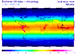 donde es la irradiancia espectral solar expresada en W/(m2·nm) a la longitud de onda y es el diferencial de longitud de onda utilizado en la integración. es el espectro de acción de referencia para el eritema y es una constante igual a 40 m2/W.[10]