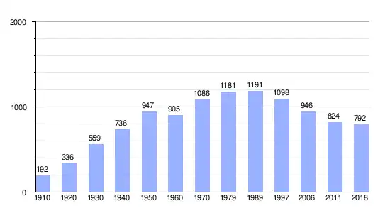 | Gráfica de evolución de Ólafsfjörður entre 1910 y 2018 |