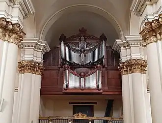 - ↑ Gerhard Grenzing S.A. (1 de julio de 2016). «Disposición». Consultado el 13 de septiembre de 2020. «Pagina de Gerhard Grenzing, empresa que restauró el órgano con la disposición también incompleta.»