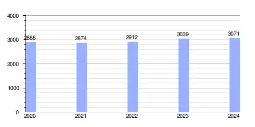 Hasta 2024 la población era de 3071 habitantes,[2] con una densidad de población de 61,50 hab/km².[2]