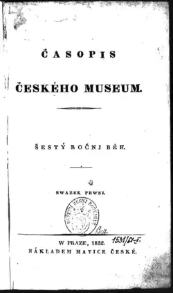 Časopis Českého Museum (abreviado Cas. Ceského Mus.)[1] fue una revista con ilustraciones y descripciones botánicas que fue editada en Praga. Se publicaron los números 5-28, en los años 1831-1854. Fue precedida por Casopis Spolecnosti Vlasteneckého Museum y reemplazada por Casopis Musea Králavstvi Ceského, Oddil Prírordovedny.