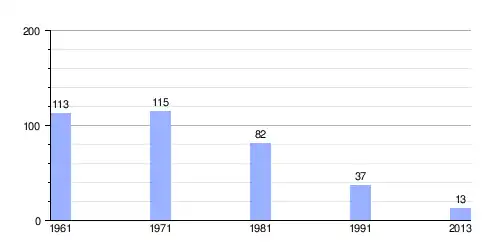 | Gráfica de evolución demográfica de Šabići entre 1961 y 2013 |