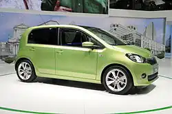 El Škoda Citigo es un automóvil de turismo de segmento A, desarrollado con base en una plataforma mecánica; derivada de la usada en el VW Up! y el SEAT Mii, que salió al mercado en el año 2011.[1]