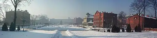 Al entrar en la localidad se puede observar un antiguo mapa en el que se afirma que fue la única ciudad de Europa creada íntegramente para abastecer a una fábrica (jedyna w Europie osada fabryczna).
