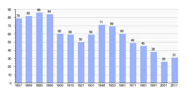 | Gráfica de población de Žubrinci 1857-2011 |