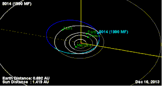 - ↑ «(8014) 1990 MF». Web de JPL (en inglés). Consultado el 5 de marzo de 2017.