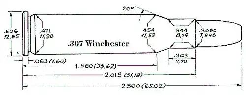 - ↑ «What is a .307 Winchester?». The Beatrice Daily Sun. 2 de septiembre de 2015. Consultado el 21 de noviembre de 2020.