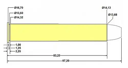 El diámetro de la bala suele ser de .512 pulgadas, con pesos de entre 600 y 700 granos