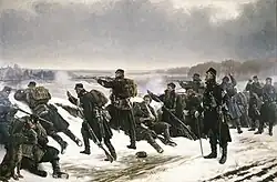 ![]() Fra forposterne 1864, de Vilhelm Rosenstand, cuadro que aparece en la introducción de la serie. | ||
