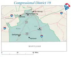 El 19.º distrito congresional se encontraba ubicado en las coordenadas 39°48′26″N 76°59′5″O / 39.80722, -76.98472.