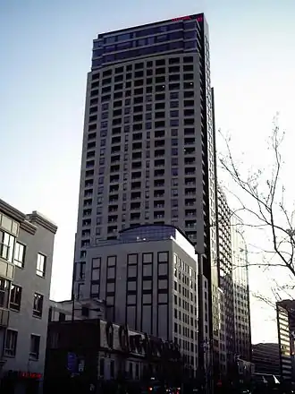 Acabado de construir en 2009, tras treinta y seis meses de obras, es actualmente el 29.º edificio más alto de Montreal, llegando a los 112,5 m (369 pies ).
