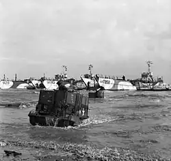Las lanchas de desembarco se desplegaron a 7 millas (11 km) de la playa, una distancia más corta que la de los estadounidenses (12 millas (19 km)) y debido al clima, muchas de las tropas estaban enfermas del mar. En lugar de arriesgarse a los tanques DD con su navegación limitada en los mares agitados, fueron desembarcados directamente en las playas con la infantería de asalto o un poco más atrás de ella. Antes de esto, los ingenieros del grupo de playa habían aterrizado (280.ª Compañía para la 69.ª Brigada y 73.ª Compañía para la 231.ª, ambos con blindaje de apoyo) y habían comenzado a reducir los obstáculos y las defensas de la playa. Los batallones de asalto de la 69.ª Brigada aterrizaron a ambos lados de La Rivière, los Yorkshires del este volaron al este del desembarco previsto y atacaron La Rivière desde la retaguardia a las 10:00. Al oeste, los Green Howards fueron atrapados inicialmente en fuego enfilada desde La Rivière, pero a las 10:00 estaban a 1 milla (1,6 km) hacia el interior del risco de Meuvaines. Durante este avance, el Sargento Mayor del 6° de Green Howards, Stanley Hollis, estuvo en la primera de las acciones que le iban a otorgar la Cruz Victoria, la única que concedida el Día D. El 7°de Green Howards, que aterrizó a la H+45 minutos, tomó el puente en Creuilly antes de las 15:00.[75][76][77]