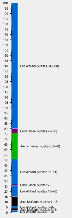 - Ayulo (100 vueltas) y McGrath (100) compartieron el mismo coche. Puntos para la tercera posición fueron compartidos entre los conductores.
