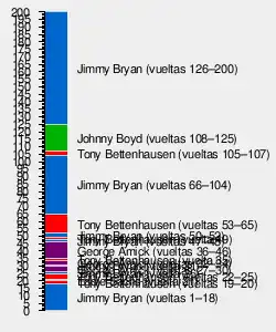 | Piloto Ganador | Fabricante Ganador | Promedio de Velocidad de competencia | Pole Position | Mayor Número de vueltas registradas como Líder |