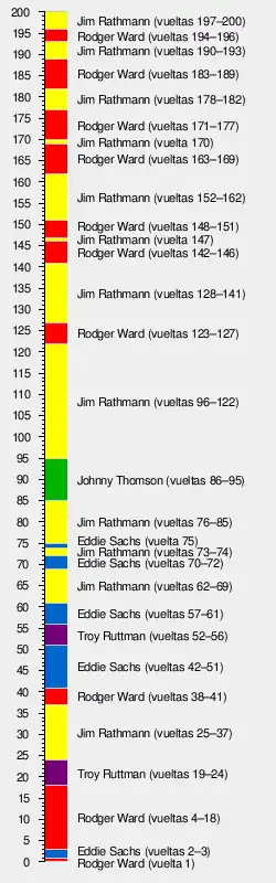 | 31 | 4 | 97 | Dick Rathmann | Watson-Offenhauser | 145.54 | 6 | 42 | 0 | Problema de Frenos | ||