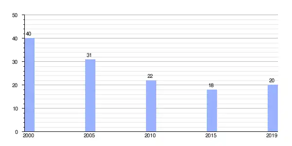 | Gráfica de evolución demográfica de A Brandela entre 2000 y 2019 |