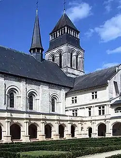Las primeras estructuras permanentes se conformaron entre 1110 y 1119, en territorio posteriormente conocido como Imperio angevino. El monarca Enrique II de Inglaterra, su esposa Leonor de Aquitania y el hijo de ambos Ricardo Corazón de León fueron enterrados en la abadía a finales del siglo XII. Perdió su carácter religioso durante la Revolución francesa, convirtiéndose en una cárcel entre 1804 y 1963. Desde 1975, alberga el Centro Cultural del Oeste.