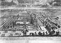 El monasterio del siglo XVII dibujaba un vasto rectángulo de 183 m de largo y 169 m de ancho, rodeado de torres: