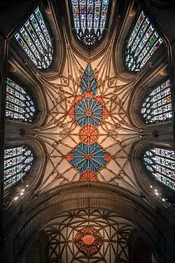 La bóveda de la nave fue construida entre 1320 y 1330 y es de estilo gótico. Quince claves a lo largo de la cumbrera de la bóveda ilustran la vida de Cristo, mientras que las claves subsidiarias representan ángeles tocando instrumentos musicales.[10]