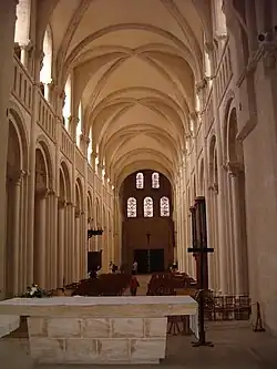 La nave está bordeada por arcadas con arcos de medio punto con una galería superpuesta (triforio) que sirve como apoyo a una bóveda ojival. Es de hecho la primera bóveda ojival construida en Normandía, datando de 1130.