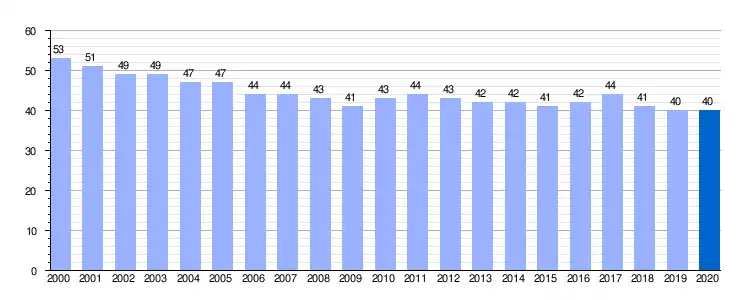 | Gráfica de evolución demográfica de Abastas entre 2000 y 2020 |