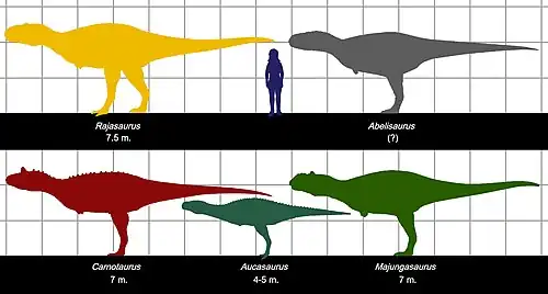 - ↑ Sereno, P.C. (2005). Abelisauridae Archivado el 23 de octubre de 2007 en Wayback Machine.. TaxonSearch. 7 November 2005. Retrieved 19 September 2006.