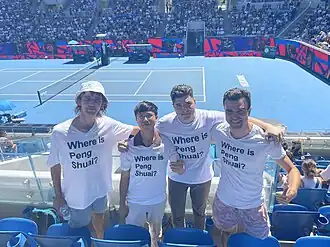 Durante el Abierto de Australia de 2022, se prohibieron las camisetas ¿Dónde está Peng Shuai? en las sedes.[24] La prohibición fue revocada luego de una protesta.[25]