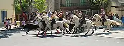 Los toros son dirigidos por un número de jinetes que oscila entre los 10 y los 20. Por lo que respeta a los corredores, estos se sitúan delante de los astados, separándolos e intentando hacerles caer. Fueron apodados como "carboneros" porque se ennegrecían la cara para no ser reconocidos.[7]