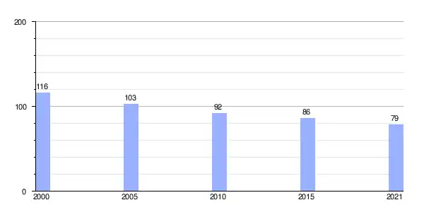 | Gráfica de evolución demográfica de Abuíme entre 2000 y 2021 |
