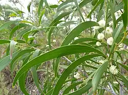 Es un árbol australiano de rápido crecimiento australiano, la madera de la que se utiliza para la fabricación de muebles. Está muy extendida en el este de Australia desde la costa central de Queensland hasta el sur de Victoria, con poblaciones alejadas desde la meseta de Atherton en el norte de Queensland y King Island en Tasmania. Crece hasta 5-15 m de altura y 4-7 m de ancho. Las hojas tienen forma de hoz y miden hasta 20 cm de largo, y perfumadas flores de color crema.[2]