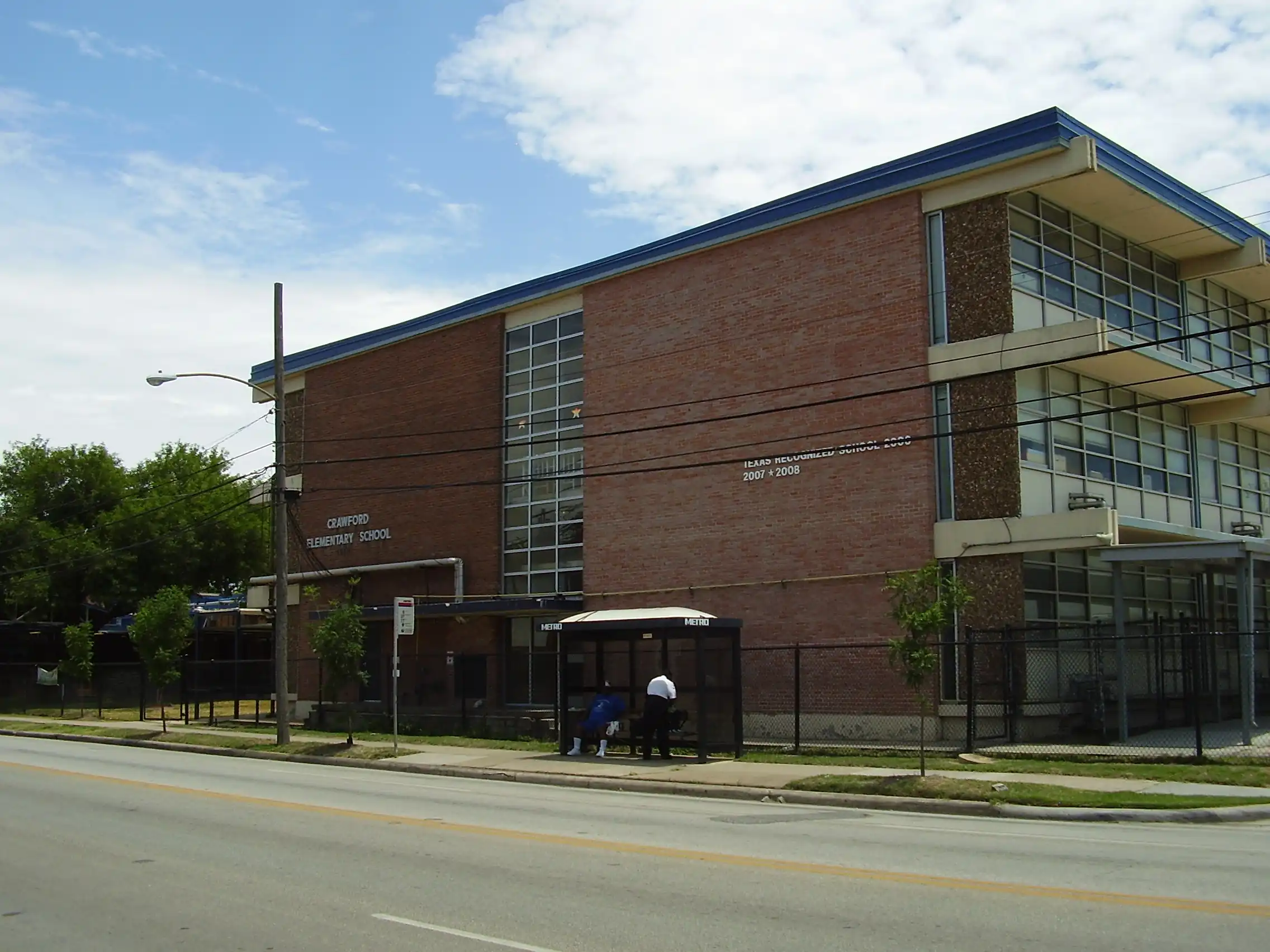 - ↑ Mellon, Ericka. "Judge puts demolition of old Wheatley building on hold pending trial." Houston Chronicle. 24 de octubre de 2014. Consultado el 23 de enero de 2015. "The all-boys school is now housed in the old Crawford Elementary on Jensen Street."