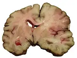La trombosis del seno venoso cerebral conduce a un ictus debido al aumento local de la presión venosa, que excede la presión generada por las arterias. Es más probable que los infartos experimenten una transformación hemorrágica (fuga de sangre hacia el área dañada) que otros tipos de accidente cerebrovascular isquémico.[31]