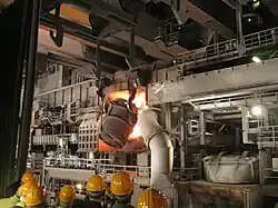 Acería de oxígeno básico (AOB), también conocida como siderurgia Linz-Donawitz,[1] es un método primario de siderurgia en el que una mezcla de carbón y hierro fundido se convierte en acero. Soplando oxígeno a través del arrabio, el fundido disminuye el contenido de carbono de la aleación y se convierte en acero con poco carbono. El proceso se conoce como básico porque se agregan fundentes de quemado de cal o dolomita, que son bases químicas para promover la eliminación de impurezas y proteger el revestimiento del convertidor.[2]