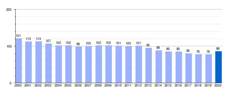 | Gráfica de evolución demográfica de Acera de la Vega entre 2000 y 2020 |