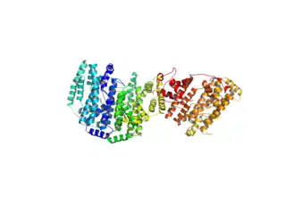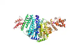 Las estructuras 2XZ0 y 2XZ1 muestran los dramáticos cambios conformacionales de esta enzima cuando se encuentra unida (2XZ1) y desunida (2XZ0). En su forma de dímero, la cadena del ácido graso se une a una hendidura hidrofóbica en la interfaz entre los dos monómeros.[6] Este canal central se encuentra duplicado por sitios de unión para los donantes de electrones en el otro lado.