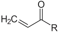 Un compuesto acrílico es típicamente un compuesto de carbonilo no saturado: contiene un enlace doble de carbono-carbono y un enlace doble de carbono-oxígeno, separados por un enlace simple de carbono-carbono. Por lo tanto, tiene las propiedades características para ambos grupos funcionales: