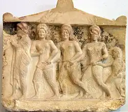 - ↑ Sánchez, Carmen (2006), Una nueva mirada al arte de la Grecia antigua, p. 190, Madrid: Cátedra, ISBN 84-376-2328-6.