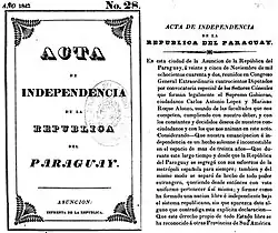 Wikisource contiene obras originales de o sobre Acta de la Independencia del Paraguay.