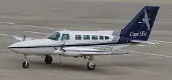 - una aerolínea de alimentación que opera para la aerolínea regional Cape Air que es propiedad de Hyaniss Air Services.