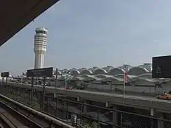 La parada Ronald Reagan Washington National Airport del Metro de Washington, en las líneas Amarilla y Azul, se encuentra en una plataforma elevada exterior conectada a la explanada de las terminales B y C.