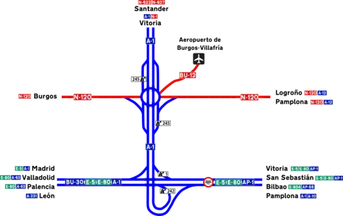 En 2012, se propuso a la ciudad de Burgos como plataforma multimodal europea, combinando mercancías por carretera, ferrocarril y aviación.[7]