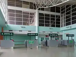 En el piso de llegadas, hay mostradores en los que los pasajeros pueden comprar cupones para taxis de aeropuertos o boletos para autobuses de traslado al centro de Tawau.