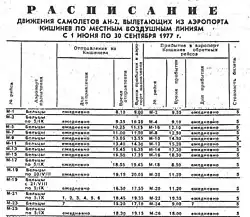 | Аэрофлот - líneas internas moldavas | Chisináu, Ocnița, Cámenca, Soroca, Cahul, Cuhnești, Glodeni |