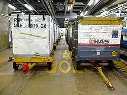 - Carga de equipaje: Normalmente se utiliza un vehículo especializado para ello, se puede tratar de equipaje suelto o en ULD´s, dependiendo del tamaño y capacidad del avión, esto también incluye a aeronaves de carga.