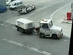 Carros de carga utilizados por aeropuertos - Remolque de aeronaves: Remolque hacia zonas de mantenimiento, otros aparcamientos u hangares.