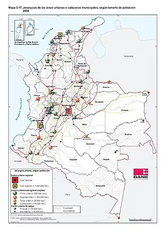 ![]() Mapa de la jerarquía urbana en Colombia | ||